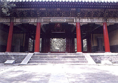 “杏壇”二字,這就是相傳孔子講學(xué)的地方。孔子杏壇設(shè)教記載最早見于《莊子,漁父篇》: “孔子游乎緇帷之林,休坐乎杏壇之上,北子讀書孔子弦歌鼓琴”。但是原址在哪里卻無記載.宋天禧二年 (1018年),孔子四十五代孫孔道輔監(jiān)修孔廟,將正殿后移擴建,以正殿舊址“除地為壇,環(huán)植以杏,名曰杏壇”,金代始于壇上建亭,由當(dāng)時著名文人黨懷英篆書“杏壇”二字。