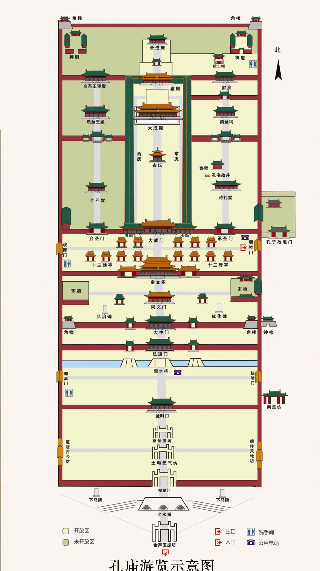 孔廟是我國歷代封建王朝祭祀春秋時期思想家、政治家、教育家孔子的廟宇 ,位于曲阜城中央。它是一組具有東方建筑特色、規(guī)模宏大,氣勢雄偉的古代建筑群。