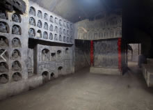 萬佛洞位于千佛山北麓,建于1992年,由莫高集錦、龍門精華、麥積奇觀、云岡薈萃四部分組成,是千佛山的一大勝景。洞長500米,經(jīng)過藝術(shù)家精選、濃縮、重構(gòu),用仿造的手法塑造佛祖、菩薩、弟子、天王近3萬尊,集敦煌、龍門、麥積山、云岡全國四大石窟的精華于一身。