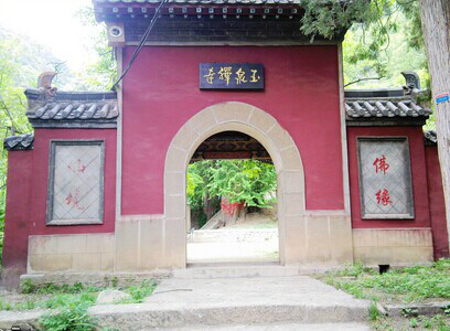 玉泉寺位于岱頂北,直線距離為6.3公里,山徑20余公里。有公路與泰城相通。寺東南有蓮花峰、香爐峰、周明堂故址、天井灣;西為摩天嶺;南臨賣飯棚子;北依返倒山、長城嶺。玉泉寺由北魏僧意所創(chuàng)建,金代又有僧善寧重建,元代僧普謹增建七佛閣,后屢興屢廢。古時山民曾在山谷內拾到羅漢像,因名佛峪、佛谷。又因南有谷山,東有玉泉,又名谷山寺、谷山玉泉寺,俗名佛爺寺。今遺址內存碑碣10塊,周圍有千年古栗樹20余株。院內原有大雄寶殿,中祀釋迦,側立十八羅漢,四周有壁畫。正殿祀唐初政治家魏征等!拔幕蟾锩敝袣,今為玉泉寺景區(qū)立新林場駐地。