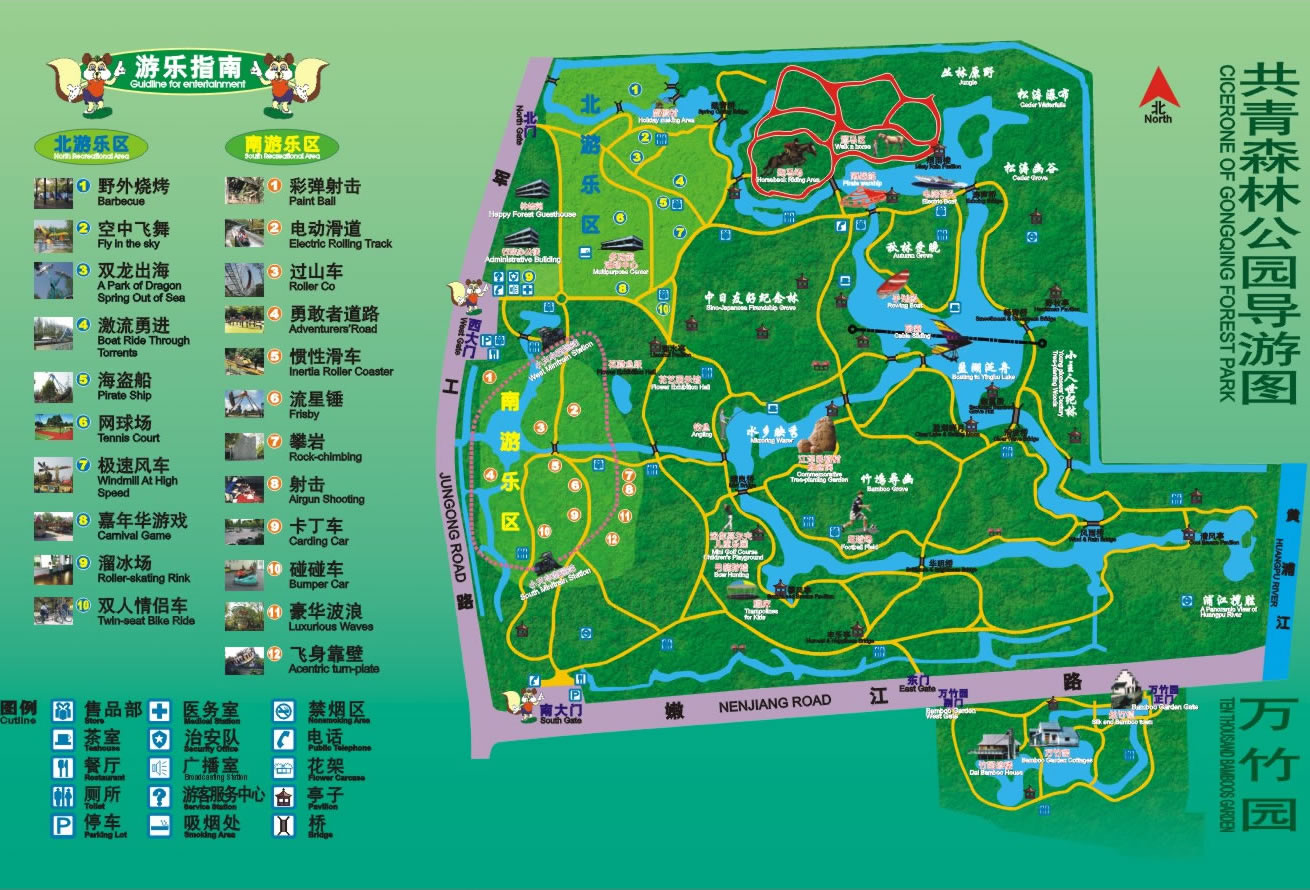 上海共青森林公園位于上海市楊浦區(qū),東瀕黃浦江,西臨軍工路,全園總占地1965畝,開放公共綠地1870.6畝,其中北園“共青森林公園”1631畝,南園“萬竹園”239.6畝。