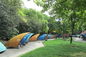 建園初期在“秋林愛晚”北部建了一處簡(jiǎn)易碼頭。1993年投資8萬元,在簡(jiǎn)易碼頭東面建造電動(dòng)船碼頭、鋼結(jié)構(gòu)玻璃瓦頂船塢棚及修理房,建筑面積1147平方米。1994年又投資40.2萬元,在“秋林愛晚”南部建造手劃船碼頭、水泥平頂船塢和管理房,建筑面積429平方米。共有手劃船62只、腳踏船10只、電動(dòng)船43只。