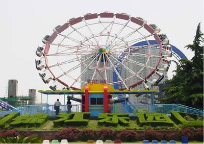 由上海游藝機(jī)公司建造的“上海大轉(zhuǎn)盤”是我國第一座超百米的巨型摩天輪,于 2002 年 5 月 1 日正式運轉(zhuǎn)!吧虾4筠D(zhuǎn)盤”總高度 108 米;圓盤直徑 98 米;總重量 580 噸;抗強(qiáng)風(fēng) 12 級;搭載客艙 42 個;最大載客量1260 人 / 小時;運行一周約 25 分鐘。圓盤還配有電腦程控的高功率彩燈,晚間狀如一輪高懸空中的彩色明月,美輪美奐。