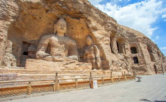 云岡石窟,原名靈巖寺、石佛寺。位于山西省大同市西郊17公里處的武州山南麓,是中國著名的石窟群之一。云岡石窟的開鑿始于北魏時期,北魏皇始三年(398年),道武帝拓跋珪將都城從盛樂(今和林格爾縣)遷至平城(今大同市),武州山成為盛樂與平城之間的交通要沖。文成帝拓跋濬即位后,令沙門統(tǒng)曇曜主持復(fù)法大業(yè)。在文成帝的支持下,曇曜選擇了鐘靈毓秀的武州山,"鑿山石壁,開窟五所,鐫建佛像各一,高者七十尺,次六十尺,雕飾奇?zhèn),冠于一?quot;。云岡的大部分洞窟在孝文帝元宏遷都洛陽前完工,但是造像工程則一直延續(xù)到正光年間(520~525年)。云岡石窟的開鑿歷時約150年,歷經(jīng)北魏、東魏、西魏、北齊、隋、唐等朝代,現(xiàn)存主要洞窟45個,大小窟龕252個,石雕造像59000余尊,是中國石窟藝術(shù)寶庫中的瑰寶。