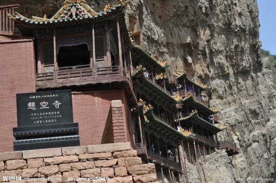 懸空寺始建于北魏后期(491年),距今已有一千五百多年,是佛、道、儒三教合一的獨特寺廟!皯铱账隆苯ㄖ䴓O具特色,以如臨深淵的險峻而著稱,素有“懸空寺,半天高,三根馬尾空中吊”的俚語,以如臨深淵的險峻而著稱。