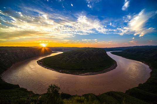 “天下黃河第一灣”位于山西省石樓縣辛關(guān)鎮(zhèn)馬家畔和陜西清澗縣玉家河鎮(zhèn)舍峪里村之間的黃河段,最佳觀景點(diǎn)為山西省石樓縣辛關(guān)鎮(zhèn)馬家畔。