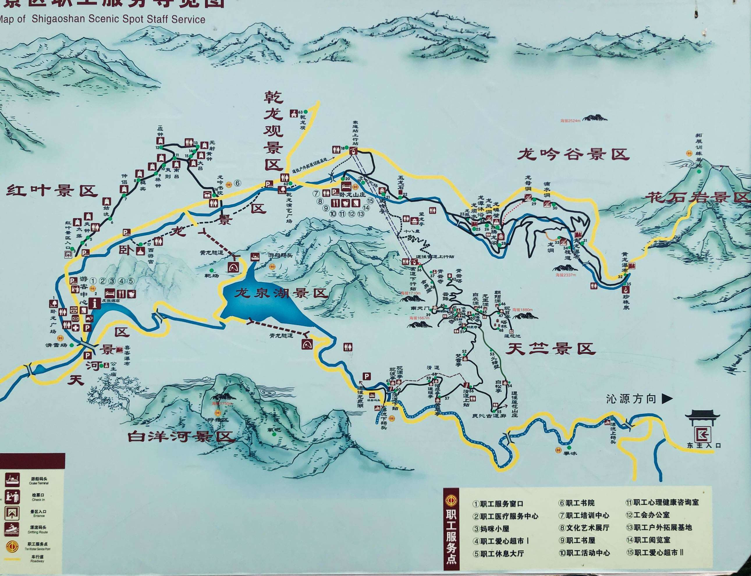 3、一日游線路一:景區(qū)西入口——公主廟——乾龍觀——臥龍溝索道上站——普塔院——石膏山主峰——天河舍利塔——天門壯觀——鐘泉寺——羅頂松濤——朝陽洞索道下站——景區(qū)西入口。