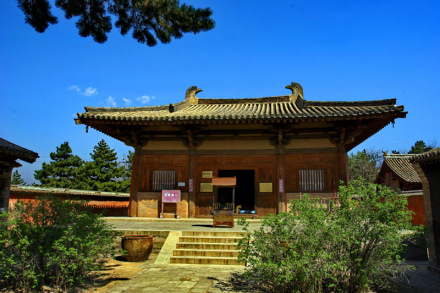 坐落在佛光山的山腰,有“亞洲佛光”的美稱。寺院依山而建,東、南、北三峰環(huán)抱,規(guī)模宏大,其建筑、塑像、壁畫(huà)和墨跡被譽(yù)為“四絕”。佛光寺創(chuàng)建于北魏孝文帝年間,唐武宗會(huì)昌滅佛,寺廟被毀。唐大中十一年,主殿東大殿得以重建。佛光寺是現(xiàn)存唐代木構(gòu)建筑的范例,在建筑史上有突出的地位。東大殿內(nèi)佛壇上有唐代彩繪泥塑佛像三十五尊,體態(tài)豐滿,栩栩如生。壁畫(huà)大多是唐代的原作,也有宋代和明代的,都是不可多得的藝術(shù)佳作。文殊殿為五臺(tái)山尚存的唯一金代建筑。