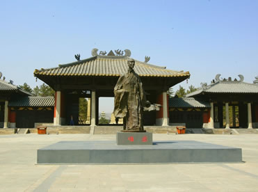 曇曜廣場位于云岡石窟景區(qū)入口處,占地6000多平方米,是為紀念云岡石窟的開創(chuàng)者曇曜高僧而建。整個廣場及亭廊建筑渲染著濃重的北魏皇家氣象,廣場中央的曇曜雕塑以瀟灑大器的寫意手法,塑造了一代佛門大德的藝術(shù)形象,高古清逸,似篳路藍縷,風(fēng)塵仆仆,卻是袈裟飄逸,似乎從千年前的塵埃中走來。公元460年,北魏文成帝復(fù)興佛法,命曇曜高僧主持開鑿了規(guī)模宏大的云岡石窟,因此,曇曜不僅是開鑿云岡石窟的創(chuàng)始人,也是北魏著名的佛學(xué)大師和譯經(jīng)大家,是北魏佛教昌盛的奠基人。