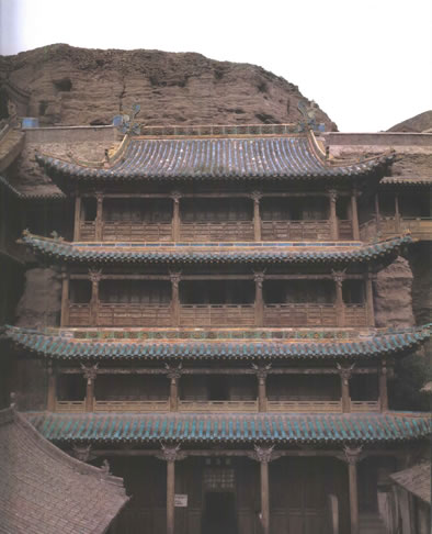 遼金:遼興宗、道宗時期,遼皇室曾對武州山石窟寺進行過延續(xù)十年之久的大規(guī)模修整。修建了石窟前接木構(gòu)窟檐的通樂、靈巖、鯨崇、鎮(zhèn)國、護國、天宮、崇福、童子、華嚴、兜率十座大寺,并對一千余尊佛像進行了整修。遼保大二年(1122年)金兵攻占大同,"寺遭焚劫,靈巖棟宇,掃地?zé)o遺"(《大金西京重修華嚴寺碑》)。金皇統(tǒng)三年至六年(1143-1146年),住持法師稟慧重修"靈巖大閣"(今第三窟外的閣樓),"自是,山門氣象,翕然復(fù)完矣。"(《金碑》)。