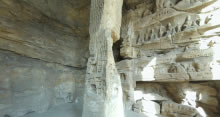 塔廟窟,一門兩窗。由于工程沒有全部完成,洞窟內(nèi)外地面凹凸不平,石窟整體顯得有些零亂。