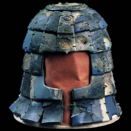 此展品為秦代的石器,通長(zhǎng)64.00厘米,出土于秦始皇帝陵K9801陪葬坑。鎧甲由前、后身甲和一對(duì)披膊組成,共有甲片380片。鎧甲的開合口位于右側(cè)肩、胸的交接處。
