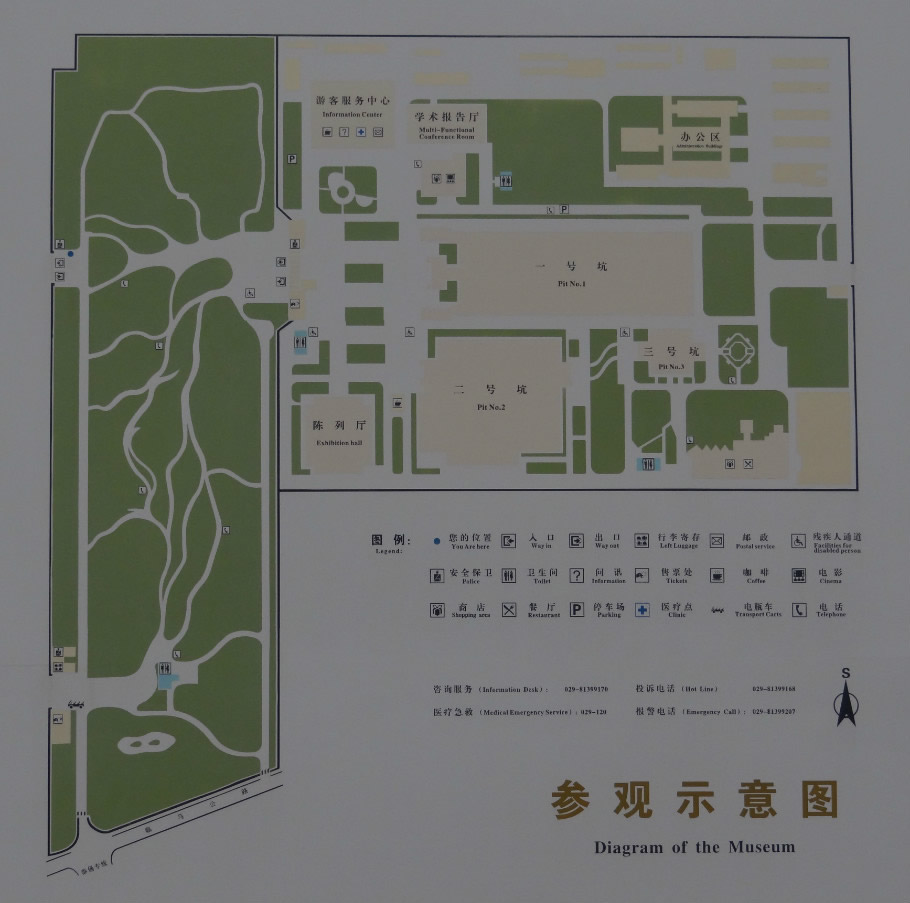 截至2020年1月,已先后建成并開放了秦俑一、三、二號(hào)坑和文物陳列廳。目前秦俑博物館面積已擴(kuò)大到46.1公頃,擁有藏品5萬(wàn)余(套)件。一號(hào)兵馬俑坑內(nèi)約埋藏陶俑、陶馬6000件,同時(shí)還有大量的青銅兵器;二號(hào)兵馬俑坑內(nèi)埋藏陶俑、陶馬1300余件,二號(hào)俑坑較一號(hào)俑坑的內(nèi)容更豐富,兵種更齊全;三號(hào)俑坑的規(guī)模較小,坑內(nèi)埋藏陶俑、陶馬72件;陳列廳內(nèi)有一、二號(hào)銅車馬。