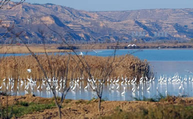 洽川地處我國候鳥南北遷徙的中軸線上,大片的黃河灘涂是鳥類的樂園。這里水源充足,魚蝦豐富,蘆葦茂密,氣候濕潤,每年10月至來年4月,都會有丹頂鶴、白天鵝、大鴇、灰鶴等70余種國家保護(hù)的一二級鳥類來此越冬,而黑鸛、蒼鷺、鴛鴦以及赤麻鴨等40余種留鳥則常年在這里繁衍生息,為洽川增添了無限生機(jī)。