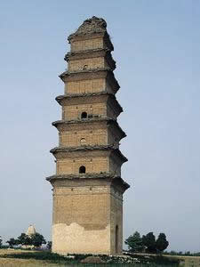 千金塔位于縣城東南1.6公里處烈士陵園內(nèi)的千金塔建于明代萬歷三十七年(1609),系縣城槐里(即后地巷,今名文化街)人康守已捐銀千兩而建,因而得名。原有題額及碑記,今已散失。與大像寺塔同屬縣級重點文物保護(hù)單位。塔為澀密檐式八角形空心磚塔,十三級,高約35米。第一級有北向券門,檐下有斗拱;第二、六、十級各有一南北券洞;第四、八級各有一東西券洞。塔頂磚縫中生有一柏,高三米左右,四季青翠,亦屬合陽奇景之一。