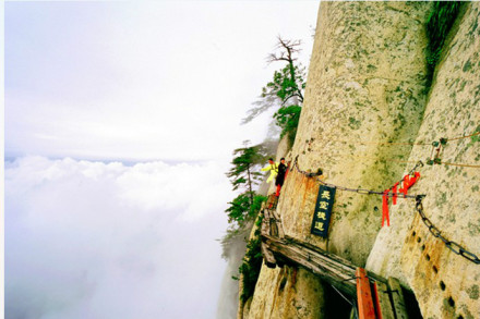 華山的著名景區(qū)多達(dá)210余處,有凌空架設(shè)的長空棧道,三面臨空的鷂子翻身,以及在峭壁絕崖上鑿出的千尺幢、百尺峽、老君犁溝等,其中華岳仙掌被列為關(guān)中八景之首。