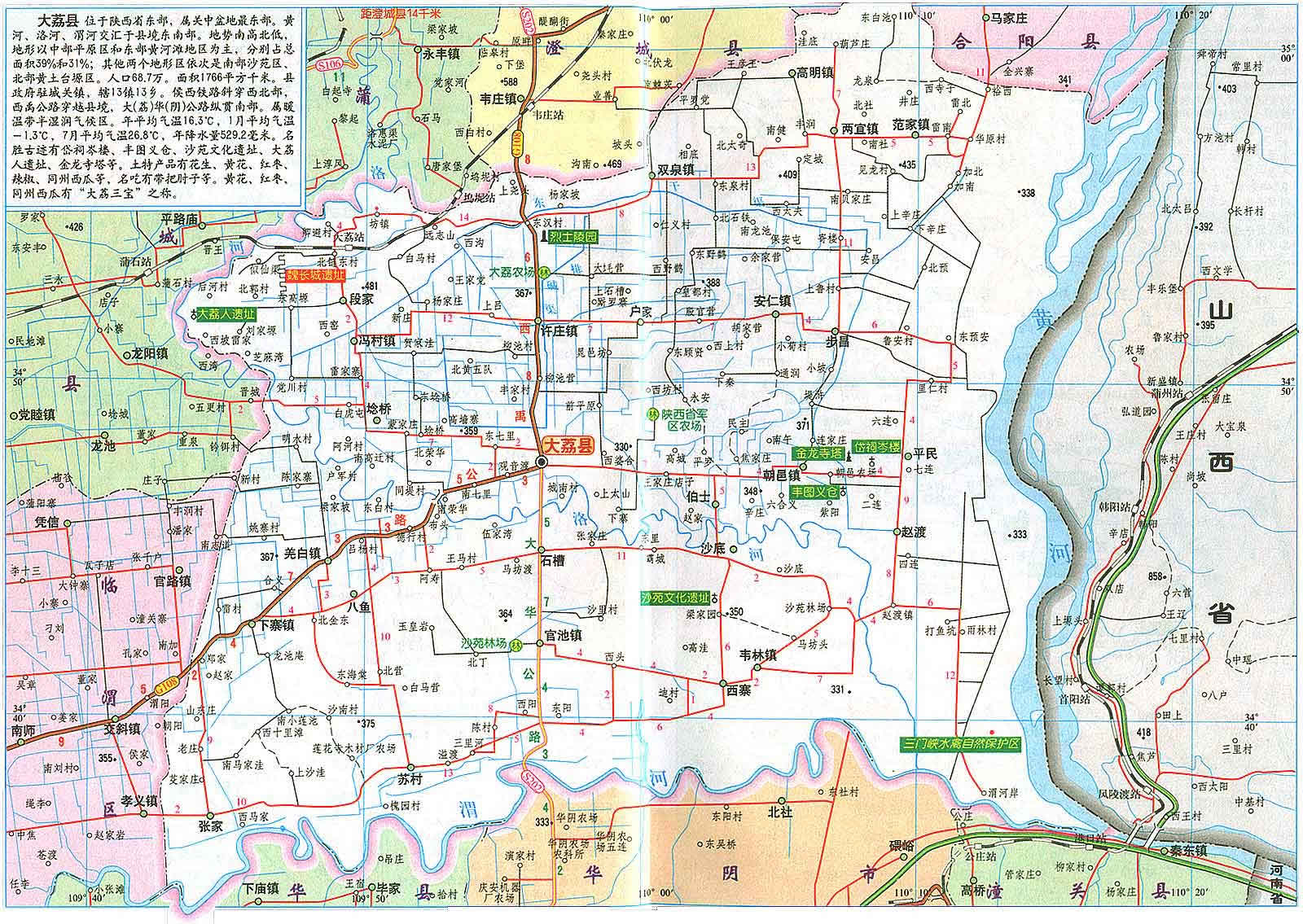 已形成了以縣城為中心、 國道、省道為骨干的公路環(huán)網(wǎng)化體系。鐵路西韓線穿越縣境內、隴海線距縣城26公里。程控電話裝機容量2.6萬門, 實現(xiàn)村村通電話, 是全省第一批電氣化達標縣?h城經過大規(guī)模改造, 面貌煥然一新, 已成為關中東部的一顆明珠。