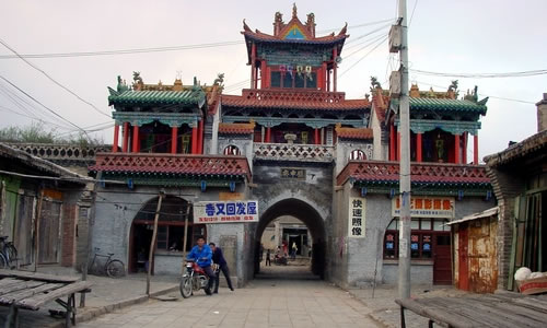 高家堡古城:唐屬豐州地,舊稱飛鴉川、彌川。城池始建于明正統(tǒng)四年(1439),原隸屬佳州,清末劃歸神木。該城位于神木縣城西南海50公里的禿尾河東岸,西北距明長城約5公里,原為夯筑土城,萬歷三十六年(1608)用磚包砌,清乾隆十五年(1750)、三十三年(1768)兩度重修,后多次修葺。該城平面呈長方形、東南墻均長311米,南北墻均431米,殘高6.5—9.1米,基寬7.52米。城墻上部建有1米高的女墻,間有垛口、嘹望洞。北城頭修有三官樓,東南角建有魁星樓,F除魁性樓、女墻、垛口、嘹望洞被壞外,其余的均保存完好。另東、南、西墻各辟一卷門,并筑有甕城,現城門的敵樓、嘹望臺和南門已破壞。城內原有的中興樓(1988年被縣人民政府公布為重點文物保護單位)、城隍廟、財神廟、五道廟、祖師廟、西門寺、貞節(jié)牌坊等古建筑,現僅存中興樓和財神廟,城內街道以中興樓為軸心,向東西輻射為東西街,向陽北南北輻射為南街和北巷。明、清到民國初,南街最為繁華,至今大部分鋪面保存完好,東、西、南街各通有巷道。居民建筑群為典型的北方構筑風格。既有四合院,如北巷的李家大院;又有前庭大院,如東街的盧家大院、西街的韓家大院;還有樓院,如十字巷的李家樓院,同心巷的劉家樓院等。高家堡古城是神木縣乃至整個陜北較為完整的一座城堡,且有獨具特色的保護價值,神木縣人民政府已擬定將該城列為重點文物保護單位。