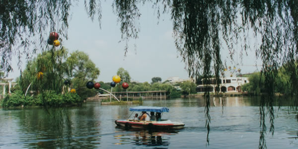 怡湖園:位于成都市北郊青白江新建成綿高速公路旁的怡湖公園,距離成都市區(qū)約30公里,占地約213畝,其中湖面積約70畝。該園于1986年由青白江區(qū)建委動(dòng)工興建,短短兩年多時(shí)間建成,于1988年正式對(duì)外開(kāi)放。怡湖公園屬于現(xiàn)代化的大型綜合公園,該園以其強(qiáng)烈的現(xiàn)代化氣息的城市園林風(fēng)格建筑和異域情調(diào)吸引了成千上萬(wàn)的中外游客,上海學(xué)林出版社曾將該園編入面向國(guó)內(nèi)外發(fā)行的《中國(guó)旅游名勝》畫(huà)冊(cè)。該園大門(mén),設(shè)計(jì)精巧,造型獨(dú)特,雅致舒暢,極富象征意義。