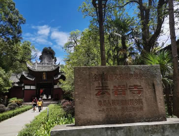 云巖寺,古號云巖觀,始建于唐乾符(公元874—879)年間,它位于竇圌山中部山脊之上,坐北朝南,背依三座頂峰,面對江油古城,東傍懸崖絕壁,西臨群峰密林,臨崖負山,視野開闊,氣勢宏偉。它經(jīng)歷了唐、宋、元、明、清的毀葺交替,佛道相爭,其建筑基本上是佛教禪宗的廟宇布局,但是佛道二教又在文化與建筑上融為一體,東為禪院,西為道觀,此種格局在四川省內(nèi)并不多見。