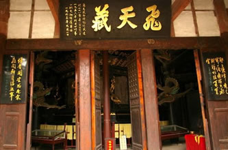 飛天藏又名星辰車,南宋淳熙八年(1180年)建,元代至正時重修,“明季兵火,惟此獨存”。是我國唯一現(xiàn)存的宋代道教木制轉(zhuǎn)輪經(jīng)藏。傳說推動星辰車,可祛病強身,延年益壽?上б驗榈钣钫诜蓿匆姷竭@件寶貝。