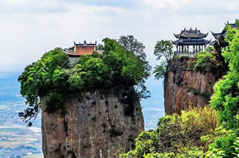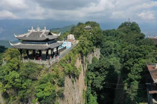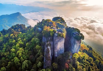 二絕鐵索飛渡:連接主峰的鐵索懸橋初建于唐代,先后換修6次。山上還有身懷絕技的飛人,在鐵鏈上表演,行走如風(fēng),被譽為“華夏一絕”。
