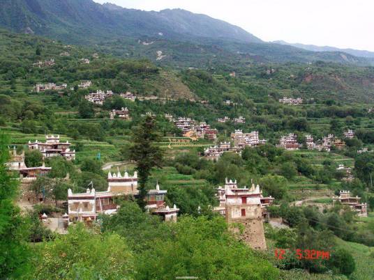 “甲居”,藏語是百戶人家之意。藏寨從大金河谷層層向上攀緣,一直伸延到卡帕瑪群峰腳下,整個山寨依著起伏的山勢迤邐連綿,在相對高差近千米的山坡上,一幢幢藏式樓房灑落在綠樹叢中。或星羅棋布,或稠密集中,或在高山懸崖上,或在河壩綠茵間,不時炊煙裊裊、煙云繚繞,與充滿靈氣的山谷、清澈的溪流、皚皚的雪峰一起,將田園牧歌式的畫卷展示在人們眼前,以一種藝術(shù)品的形態(tài)存在。2005年由《中國國家地理》雜志組織的選美中國活動中,以甲居藏寨為代表的“丹巴藏寨”被評為“中國最美的六大鄉(xiāng)村古鎮(zhèn)”之首。
