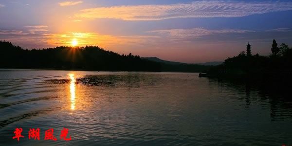 (1)川東西子湖——翠湖 出岳池東門11公里,就到了我市著名的風景湖-岳池翠湖,即川北第一風景湖。翠湖,原名響水灘水庫,位于城北8公里。1959年開始動工興建,次年8月大壩建成蓄水,蓄水量近170萬立方米。后縣委、縣府充分利用自然條件,1983年將水庫興建為旅游風景區(qū),因山清水秀,翠色可人而命名翠湖。"翠湖"二字由著名書法家李半黎書寫。有翠湖八景之說,即:玉帶長堤、平湖嵐光、芳園秋月、溢流飛瀑、銀光倒影、龜山攬勝、龍華夕照、金城煙云。