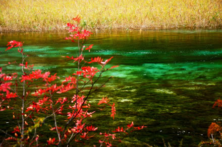 繽紛的落葉在湖光流韻間漂浮,悠遠(yuǎn)的晴空碧凈而湛藍(lán),秋天的九寨溝美得仿佛不真實(shí),無時(shí)無刻不在演繹著赤、橙、黃、綠、青、藍(lán)、紫的夢(mèng)幻組合,古人說的“造化鐘神秀”,也就不過如此吧。