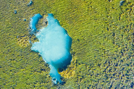 芳草海海拔2910米。沼澤化湖泊,長(zhǎng)540米、寬4—20米、深2—4米,面積5萬平方米,有水容積1萬立方米。主要接受上游溪水和降水補(bǔ)給,湖底有鈣華漏斗分布。四時(shí)觀景,各具情趣,春季綠草如茵,夏日繁花似錦,深秋一抹金黃,冬日潔白晶瑩。