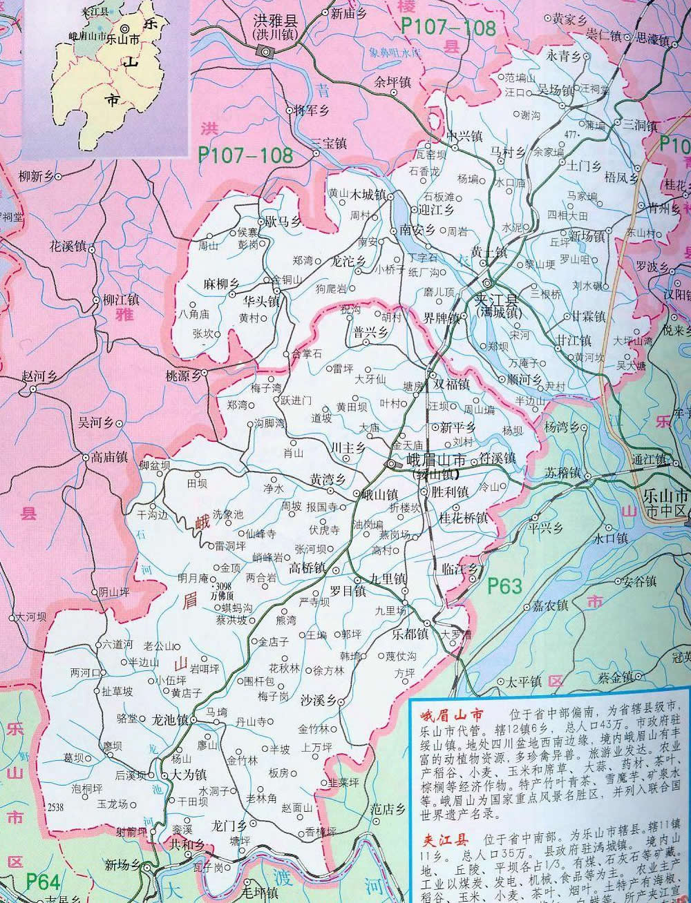 鎮(zhèn):綏山鎮(zhèn)、九里鎮(zhèn)、羅目鎮(zhèn)、龍池鎮(zhèn)樂都鎮(zhèn)、峨山鎮(zhèn)、大為鎮(zhèn)、符溪鎮(zhèn)、雙福鎮(zhèn)、高橋鎮(zhèn)、桂花橋鎮(zhèn)、勝利鎮(zhèn)