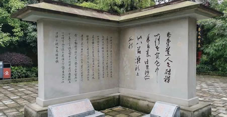 北宋著名詩(shī)人、書(shū)法家黃庭堅(jiān)謫居戎州時(shí),仿王羲之《蘭亭集序》“流觴曲水”之意,利用天然峽谷而建。池呈九曲形,立八石凳,引巖縫清泉為流,文人墨客列坐其間,可流杯飲酒,吟詩(shī)酬唱。此處巖壑清奇、古樹(shù)參天、意境清幽,為歷代文人雅士吟唱之所,是宜賓古八景之一。自宋迄今,詠贊之作繁多,或贊涪翁之高風(fēng),或頌筑池之勝績(jī),或發(fā)思古之幽情,或懷時(shí)令之感慨,可謂霧集云屯,珠璣累累,頗富時(shí)代氣息,風(fēng)采紛呈。一些詩(shī)詞歌賦在事后被勒刻于流杯池附近的巖、壑、洞、谷。據(jù)1985年統(tǒng)計(jì),計(jì)有石刻題記128通,字跡基本完整的有64通,最早的紀(jì)年石刻為宋淳熙戊申(1189)年所刻。劉光弟、張大千、黃賓虹、張愛(ài)萍等人的字跡也躍然壁上。