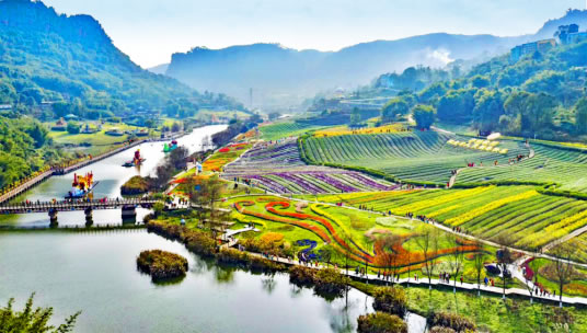 花田酒地旅游景區(qū)依托清溪河下游河畔而建,以展示花田景觀和酒文化為主題,由清溪河道景觀、花田景觀、景觀橋、半山棧道、瀑布景觀、白酒莊園等組成。也有漂流、游船、玻璃棧道、高空蹦極、攀巖、滑草等多項綜合娛樂項目。景區(qū)花卉的花期覆蓋春、夏、秋、冬四個季節(jié)。