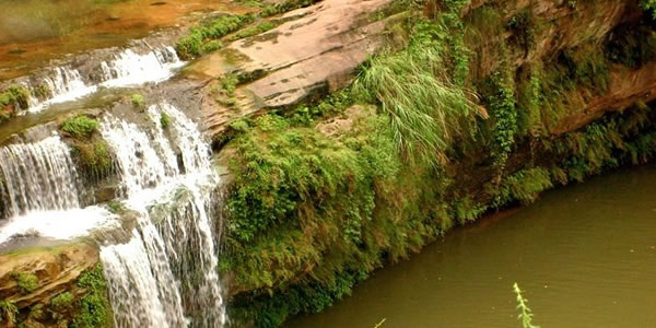 黃金峽:位于丹棱城西24千米張場(chǎng)鎮(zhèn),仁興鄉(xiāng)和王場(chǎng)鄉(xiāng)境內(nèi),峽長(zhǎng)7.5千米,兩岸壁立,對(duì)峙如門,其崖筆立陡削直插云天,形成雄偉壯觀的"一線天"。峽內(nèi)主要景點(diǎn)有:龍?zhí)讹w瀑、金峽湖、雙猩向龍?zhí)、危崖水簾、一線天、虹渡、望魚石、金船等。當(dāng)?shù)厝搜裕?quot;金峽有三奇,曉雨不濕衣,九月瑞雪飛,夜半聞琴聲","神隆博濟(jì)廟,喊聲一出雨就到"。"黃金天子一夜鑿?fù)S金堰"等傳說(shuō)故事更是神奇美妙。