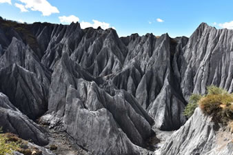 受第四紀新構(gòu)造運動影響,隨著青藏高原的隆起,鮮水河斷裂帶中的巖石,受到擠壓、剪切,發(fā)生破碎、糜化,形成糜棱巖石林。