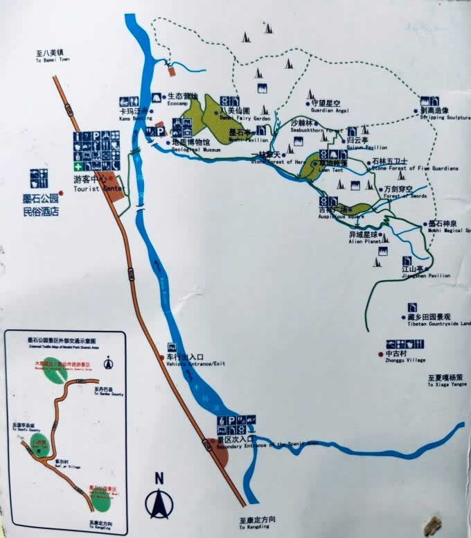 中國墨石公園景區(qū)位于四川省甘孜州道孚八美鎮(zhèn)卡瑪村與中古村交界處,地處中國最美景觀大道318國道核心區(qū),緊鄰丹巴美人谷、康定新都橋、雅江康巴漢子村等知名景區(qū),距八美鎮(zhèn)約6公里,川藏公路旁400米處。面積5平方公里,海拔約3500米。是香格里拉之巔海螺溝通向香格里拉之魂稻城亞丁的中轉(zhuǎn)站,擁有壯美草原、婉約濕地、奇幻墨石、特色民居、高原花海、金色彩秋、白塔圣寺、日出日落八大奇觀。“春賞格桑夏避暑,秋觀彩林冬踏雪”是一年四季風光的特色,而綿延在鮮水河斷裂帶上的墨石天然景觀更為世人向往,被譽為“中國最美景觀大道第八美”。