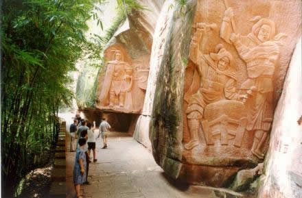 蜀南竹海景區(qū)內(nèi)竹林、絕壁、寺廟、古寨構(gòu)成的文化長廊景觀,綿延20余公里,是天人合一的曠世奇觀。在千仞絕壁之上,仙寓硐、天寶寨、三十六計(jì)摩崖石刻等,是國內(nèi)罕見的佛道儒共融的中國丹霞絕壁文化長廊景觀,是大自然的鬼斧神工和古今匠人智慧的結(jié)晶的杰作。