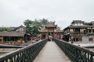 元通古鎮(zhèn)三面環(huán)水,一面環(huán)山。千百年來(lái),滾滾江水滋潤(rùn)著這方神圣的土地。江岸之外良田萬(wàn)頃,古鎮(zhèn)街頭院落森森。大小不一的街巷保存完好,木板房、青瓦房相連成片,遺存至今的古老民居,泱泱然散發(fā)著濃濃的古韻,挪動(dòng)著每一寸腳步,推開(kāi)每一扇窗欞,似乎都闖開(kāi)了歷史的大門(mén)自己也便,情不自禁、身不由己地也便走進(jìn)了過(guò)去,走進(jìn)了歷史。走進(jìn)元通深處,一幢幢民房,一條條街巷,摸著這歷史的邊邊角角,終于找到了心靈的歸宿。元通古鎮(zhèn)依山傍水一路修來(lái),鎮(zhèn)上的主要建筑都沿文井江拔地而起,上千戶(hù)人家臨河而居,水是他們的寄托,水是他們的立命之本,水與這里的人結(jié)下了不解之緣。所以,生活在這里的居民,家家的后院里都有石階可以下到河邊。古時(shí),鎮(zhèn)上的人出行大都靠水遠(yuǎn),家家戶(hù)戶(hù)都順著后門(mén)的石階進(jìn)進(jìn)出出,那情形有如走進(jìn)了以一處江南水鄉(xiāng)。在江河之上,一道鐵橋?qū)⒐沛?zhèn)與外灘緊緊地連在一起,時(shí)疏時(shí)密的鄉(xiāng)民在橋上來(lái)來(lái)去去,如履平地。這座橋名叫匯江橋,全長(zhǎng)164米、寬2、5米、高6米,造型古雅,除兩端橋樓,中間幾座帶歇山項(xiàng)的涼亭在寬闊的江面上頗顯風(fēng)致,橋下是文錦江,味江和泊河江在元通的匯流之處,流床寬闊,水流湍急,極為有利于水上航運(yùn)。據(jù)方志載,古運(yùn)通航,元通堪以重任,從此起航,須經(jīng)白馬渡,陳家渡、方渡,再順著崇州境內(nèi)最大最長(zhǎng)的河流――西河到新津龍王渡,然后進(jìn)入岷江,這段30余公里的航道乃為崇山十分重要水上交通。正是通過(guò)這條航道,元通境內(nèi)的土特產(chǎn),才得以遠(yuǎn)銷(xiāo)樂(lè)山、宜賓、瀘州等地,同時(shí)他們也從這條道上獲得了生活中的日用百貨,因元通是物流的集散地。同時(shí),外地客商也多聚匯于此,于是元通市井繁榮,生意興隆,到清咸豐年間終成大鎮(zhèn)。匯江橋雖造型古雅,但是一座現(xiàn)代橋,其修建年代竟為1986年,據(jù)載,最早的鐵索橋建于清光緒年間,長(zhǎng)達(dá)130余米,氣勢(shì)宏大壯觀,因晚清末年清明會(huì)時(shí)人多坍塌,其后人元通人又募資再建,造型如同今日,可惜毀于“文革”風(fēng)暴,視橋?yàn)榍楦屑耐械脑ㄈ,出于?duì)歷史的情感顧念,再次集資修建了索橋。