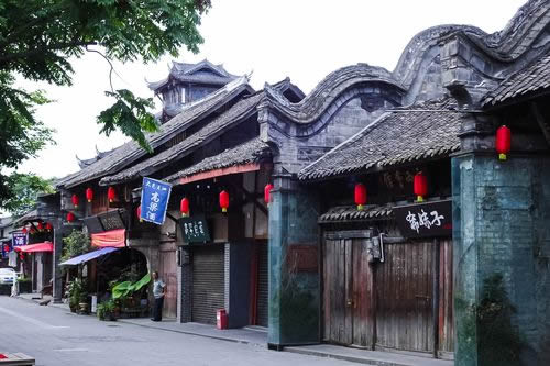 在不趕集的日子里,街上很安靜,走在石板路上能清晰的聽(tīng)到自己的腳步聲。從麒麟街上的黃氏和羅氏故居能依稀看到元通曾經(jīng)的華麗,臨河小巷口的哥特式建筑展示著小鎮(zhèn)曾經(jīng)的華麗!≡诔缰萦袀(gè)古鎮(zhèn)——它不張揚(yáng),但處處透著掩飾不住的貴氣;它不出名,可走近后卻發(fā)現(xiàn),它的內(nèi)涵已超過(guò)許多已出名的古鎮(zhèn)。它位于成都——崇州——都江堰的旅游通道上,人們?nèi)ソ肿印⑽腻\江、雞冠山、九龍溝……旅游點(diǎn),一般匆匆而去,很少走進(jìn)它,它就是在清代就有“小成都”之稱(chēng)的元通古鎮(zhèn)。這是個(gè)離成都市區(qū)很近的古鎮(zhèn)。