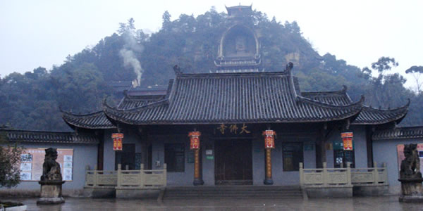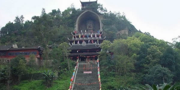 榮縣大佛:榮縣城東0.5公里有全國第二大佛——榮縣大佛,大佛寺內(nèi)半山之上,有一尊巍峨的石刻如來坐佛佛像,世稱榮縣大佛。大佛依山崖鑿成,通高36.67米,頭長8.76米,肩寬12.67米,膝高12米,腳寬3.5米,其頭部長8.76米,肩寬12.67米,腳寬3.5米。是一尊如來佛像,僅次于樂山彌勒大佛,為中國第二石刻大佛!s縣大佛開鑿于北宋元豐八年(公元1085年),完工于公元1092年,歷時八年始完工。大佛的頭頂上方有一道石條卷拱護罩,上刻“大開覺路”四字;崖頂上還有磚閣一座,遠看像在戴在大佛頭頂上的寶冠!〈蠓痂徔掏旯ず,即修有殿宇保護,根據(jù)《古今圖書集成》記載,時有“架殿十層,高四十七丈,闊十五丈”、“舊時寺門、抵今溪岸”?梢姰敃r的恢宏氣勢,其后幾毀幾修,現(xiàn)存的殿宇為清代嘉慶、道光年間所建。1988年重建的大佛護身樓,是仿木仿古重檐歇山式建筑,既保護了大佛,又具游覽價值,逐層登樓近瞻佛容慈顏,從上到下盡觀大佛偉岸雄姿,鳥瞰榮城風(fēng)貌,眺望遠山近巒。