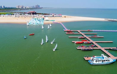 東疆港人工沙灘(東疆灣金沙灘)—天津?yàn)I海新區(qū)首個(gè)人工海灘已經(jīng)建成,藍(lán)色的海水,金色的沙灘,或坐在松軟沙灘上吹海風(fēng),或光著腳丫在鵝卵石帶上散步,撿貝殼、吃燒烤、玩沙灘排球……您用不著走出天津,就能享受“碧海金沙”帶來的樂趣。東疆港人工沙灘所處的位置是天津海岸線最靠近外海,也是水質(zhì)最好的地方。東疆港人工沙灘的“金沙”平均厚度達(dá)1.2米,從岸邊呈緩坡狀一直延伸至海邊。人工沙灘所用的“金沙”全部從福建運(yùn)來,用量近20萬(wàn)噸。沙灘的緩坡設(shè)計(jì)充分考慮到潮水漲落時(shí)的水流情況,可防止海水退潮時(shí)將“金沙”帶走。為保證游人安全,在公共游樂區(qū)沙灘的近海端鋪設(shè)了一條寬約58米的鵝卵石帶,所用鵝卵石將從秦皇島運(yùn)來。此外,天津港還在附近海域修建防波堤,以保持海灘的潔凈,防止海上漂浮物進(jìn)入人工海灘。