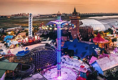天津歡樂(lè)谷主題公園占地面積35萬(wàn)平方米,坐落于天津東麗湖畔。全園分為六大主題區(qū):演藝中心、歡樂(lè)時(shí)光、海洋之心、維京海港、圣誕村、飛躍加勒比。全園擁有56項(xiàng)水陸兩棲、老少皆宜的游樂(lè)設(shè)施,每日近90場(chǎng)藝術(shù)盛宴,以多元?dú)g樂(lè)塑造一座全年歡樂(lè)之都、一個(gè)充滿(mǎn)激情與浪漫的繁華都市開(kāi)心地。