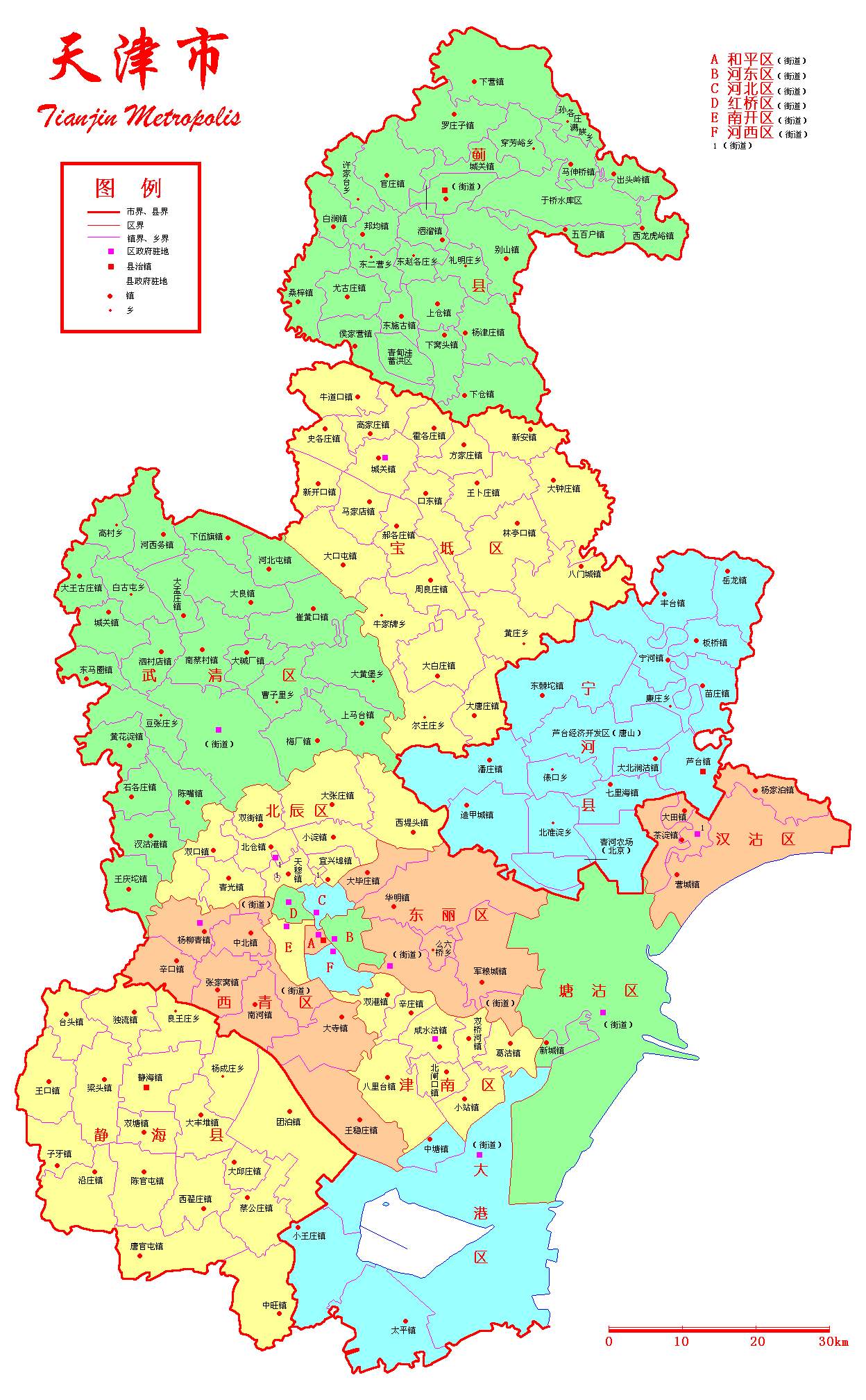 天津市簡(jiǎn)稱津,它地處華北平原東北部,渤海之濱,總面積11919.7平方公里,素有渤海明珠之稱。全市13個(gè)區(qū)、5個(gè)縣,為中央直轄市和十四個(gè)沿海開放城市之一。人口1000萬(wàn),有漢、回、朝鮮、滿、蒙古等民族。