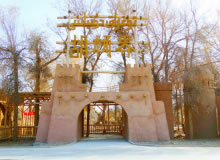 風(fēng)格獨(dú)特、氣勢宏偉的大門就是刀郎人民俗村寨門。造型似刀郎人英雄男兒形象,體現(xiàn)刀郎人的勇敢彪悍、不屈不撓、勤勞智慧、熱愛子民的硬漢精神。