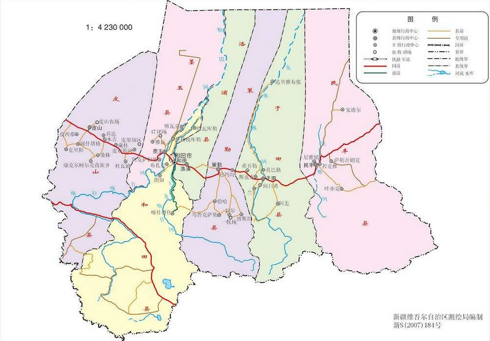 和田地區(qū)轄1個縣級市、7個縣: