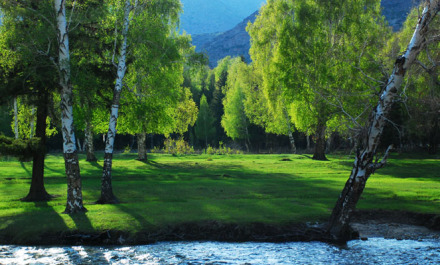 白樺林生長在額爾齊斯河凸岸河灣上,面積1.5平方千米,由三個(gè)大小不一的白樺洲組成,以白樺樹為主,西伯利亞苦楊為次,森林為寒溫帶山地闊葉次生林。