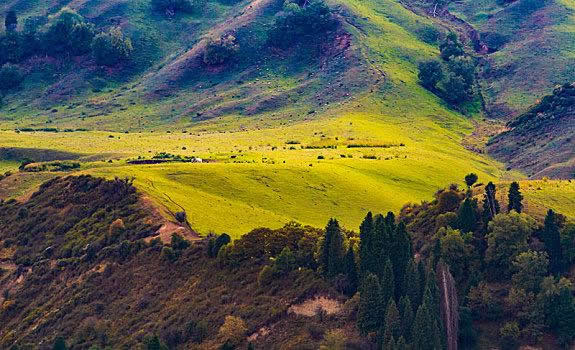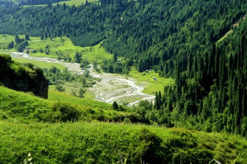 伊犁的草原風(fēng)景區(qū)都是處在東西走向的河谷地帶,唯獨(dú)伊犁鞏留縣東部山區(qū)的庫爾德寧是在一條南北走向的山間闊谷,長約14公里,最寬處約1公里,谷底平均海拔1500米,庫爾德寧便是哈薩克語“橫溝”的意思。特殊的南北走向,使得庫爾德寧冬暖夏涼,四季氣候宜人,所以庫爾德寧既是伊犁著名的風(fēng)景區(qū),又是旅游避暑的勝地,兼具江南山鄉(xiāng)的嫵媚清秀和草原景色的博大粗獷,吸引著越來越多的國內(nèi)外游客。她的絕色天姿和超凡脫俗的自然景觀令人嘆為觀止,使人無限向往。