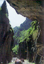 天池石門:景名為“石門一線”,海拔1500米,位于大天池以北5.9公里處,為一段被三工河古河道切割形成的石峽谷,這道山口是進入風景區(qū)的天然門戶;峽谷長約百余米,最窄處僅十來米寬,兩側直立的巖壁高逾數十米,形勢峻險,仰視見一線天,側邊盤繞三工河水。