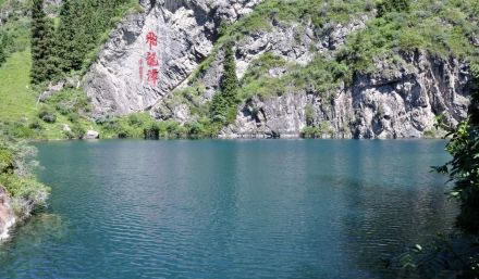 西小天池:海拔1600米(一說1660米),位于主湖(天池大海子)西北,在其腳下西北側約兩公里處,五十盤公路第三盤的右下方,湖水由天池大壩西南滲漏,以瀑布形式注入潭中,并瀉入三工河;古稱玉女潭,相傳為西王母洗腳處,景名為“王母腳盆”,又稱小龍?zhí),因而也稱作“龍?zhí)侗淘隆薄?/p>
