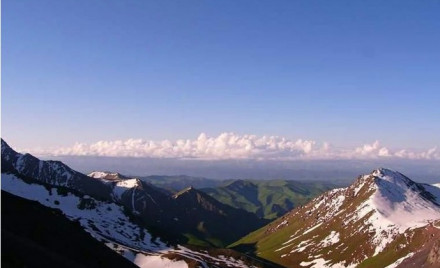 登山大營:在草甸草原自然景觀區(qū)和其上的高山礫漠自然景觀區(qū)的交接地帶,海拔為3540米,登博格達峰的大本營就設在這里。從天池南岸到大本營,登山者一般走下面兩條路:一是沿大東溝向東折南翻過“三個岔達坂”,這條路較為平緩;一是向南折東沿將軍溝翻過“以肯起達坂”,這條路則較為陡峭。兩條路的全程分別為25公里和30公里。
